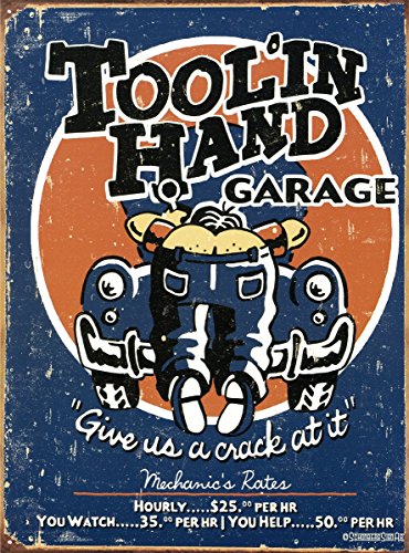 Toolin Hand Garage Tin Sign 13 x 16in