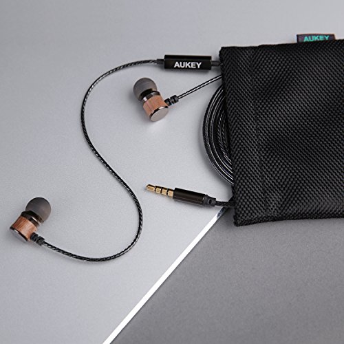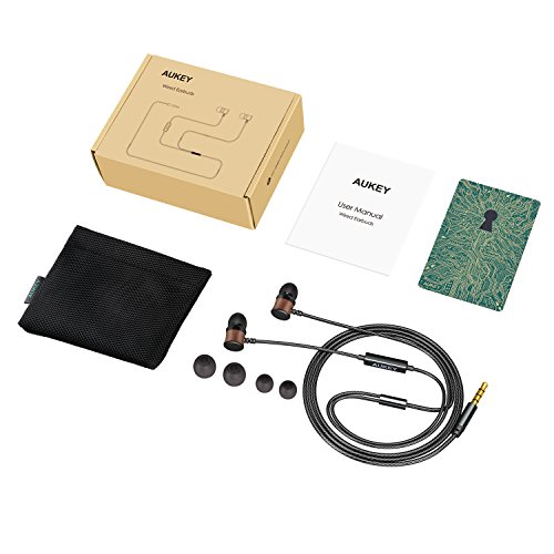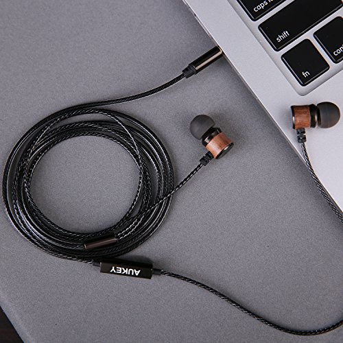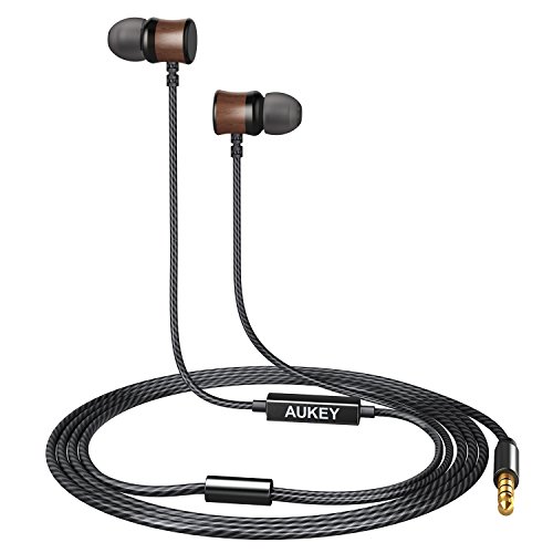 AUKEY Earbuds with Wood Housing, Wired In-Ear Headphones with Built-In Microphone for Smartphones, Tablets, Laptops, and More