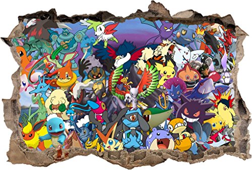 -. Title : Pokemon Smashed Decal Graphic Wall Sticker Art Mural Charizard Pikachu H709, Large
