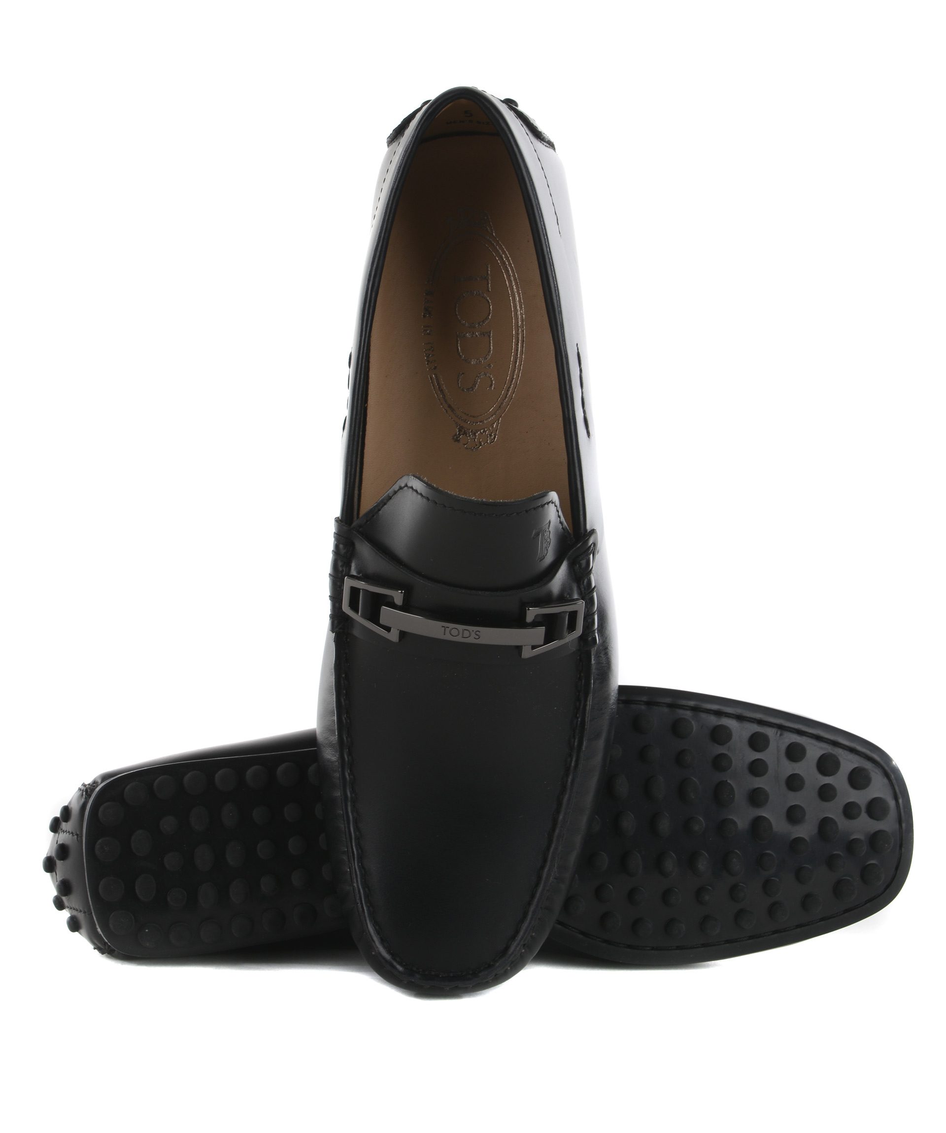 Mokasyny Gommino Driving Shoes from Tod's: Black Mokasyny Gommino Driving Shoes with round toe, stitching details and branded insole.