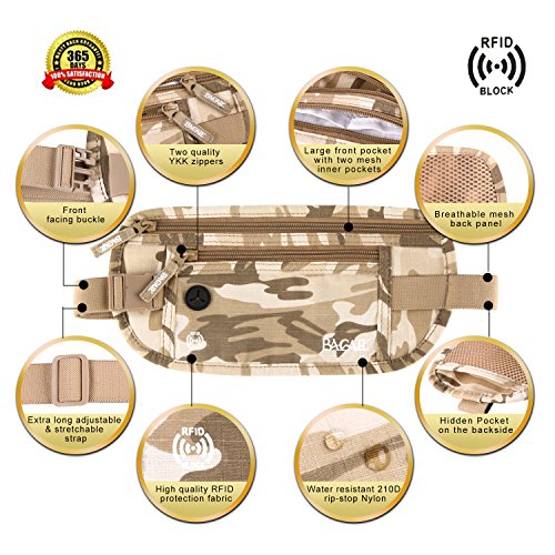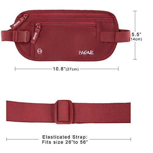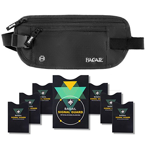 -. Feature : Bagail RFID Money belt made with high Quality Rip Stop Nylon, lined with RFID Blocking Material, finest deluxe security Valuables Organizer for Undercover covert use. Similar to fanny pack bag, but slim, hidden under-garment, safe and undetectable. / Conceals cash, credit cards & other valuables from pickpockets. Built in RFID Blocking safeguards your passport and credit cards and personal information against identity theft.To maximize security we've included 1x Passport and 6x Credit Card sleeve as well giving you the ultimate peace of mind and preventing thieves from stealing your personal information. / Two zippered compartments fit cash, passports, boarding passes, credit cards, and all the new smartphones. Inner pockets organize your valuables and quick-access carabiner clip secures your keys/usb drives. / Comfortable & Adjustable. In addition to protecting you, this money belt has comfort in mind and comes with an adjustable waist band and a soft, breathable microfiber backing for maximum comfort and fit. / 100% Satisfaction Guaranteed and backed by our Lifetime Warranty! Protect your identity, your money, and your peace of mind from thieves whether your travels take you just around corner or around the world. Makes a great travel gift.