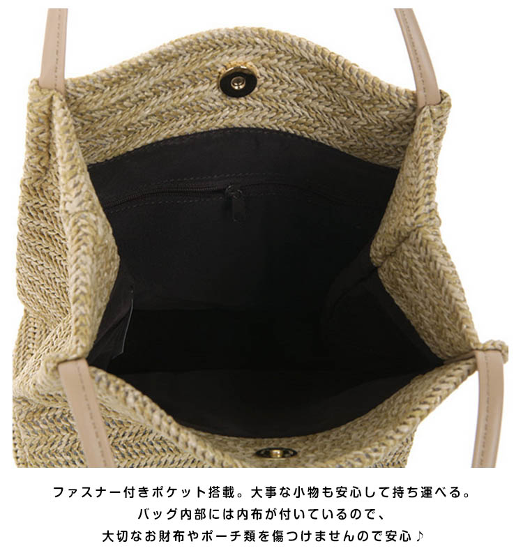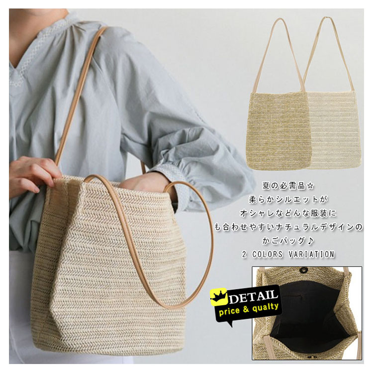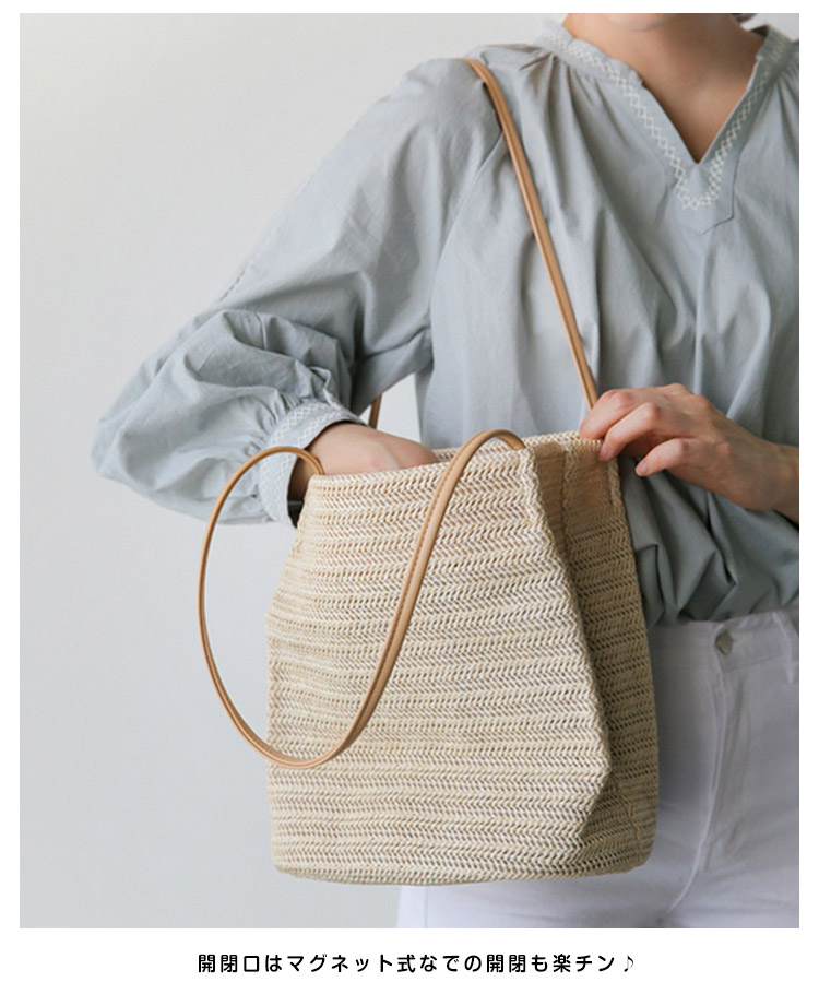 | 夏の必需品☆柔らかシルエットがオシャレなどんな服装にも合わせやすいナチュラルデザインのかごバッグ♪ハンドルは長めに取っていて、肩掛けするのに便利です。開閉口はマグネット式なでの開閉も楽チン♪春夏のお出かけに連れて行きたい、爽やかなかごバッグ♪ | |
