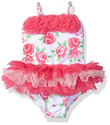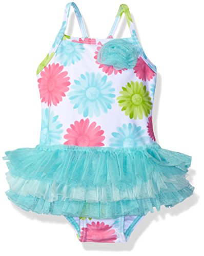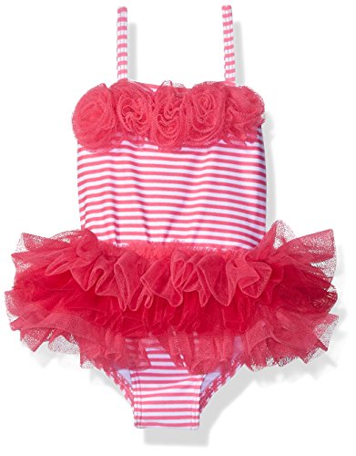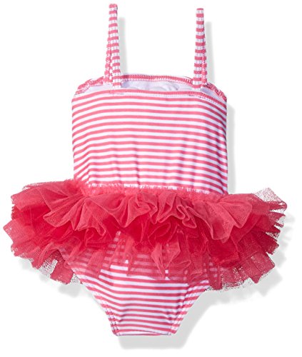 She'll love the fun and girly tutu skirt; you'll love the special quick-dry fabric with UPF 50+. baby girls' stripe swimsuit is topped with pretty mesh rosettes and gentle straps.