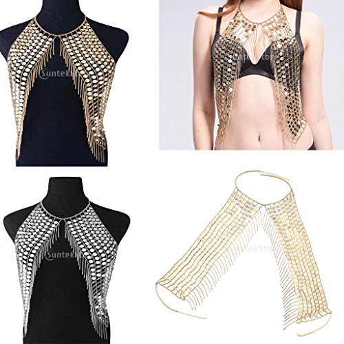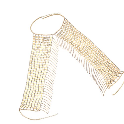 Description: - Suitable for swimwear,swimsuit,bikini,summer tops,beach long dress; - Multilayer cross tassel sequins body chain belts necklaces for womens gilrs; - As a gifts for your girls,friend and mothers; Specification: - Material: Iron sequins; - Necklace length: 48cm/ Approx. 18.9inch - Waist: 130cm/ Approx. 51inch - Extension chain: 15cm/ Approx. 5.9inch