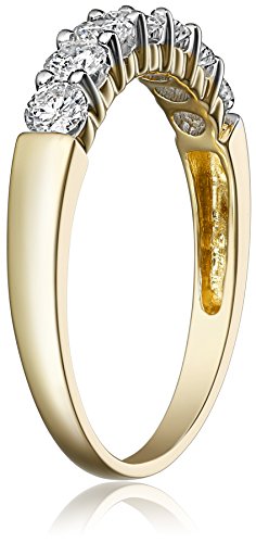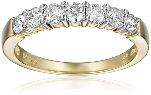 -. Binding : Jewelry -. Brand : Amazon Collection -. Department : womens -. Feature : Sophisticated 14k gold band featuring seven round diamonds in shared prong setting / Ring can be resized up or down one half size. / All our diamond suppliers confirm that they comply with the Kimberley Process to ensure that their diamonds are conflict free. / Imported -. Label : Amazon Curated Collection -. Manufacturer : Amazon Curated Collection -. Model : B000OMFEKA-Parent -. ProductGroup : Jewelry -. ProductTypeName : FINERING -. Publisher : Amazon Curated Collection -. Studio : Amazon Curated Collection -. Title : 14k Gold 7-Stone Diamond Ring (7/10 cttw, H-I Color, I1-I2 Clarity)