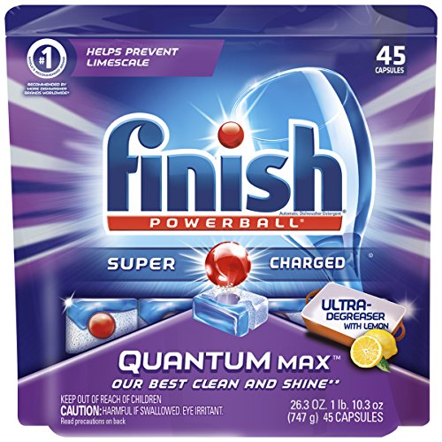 FINISH QUANTUM MAX POWERBALL, 45 TABLETS, SUPER CHARGED AUTOMATIC DISHWASHER DETERGENT, LEMON SCENT