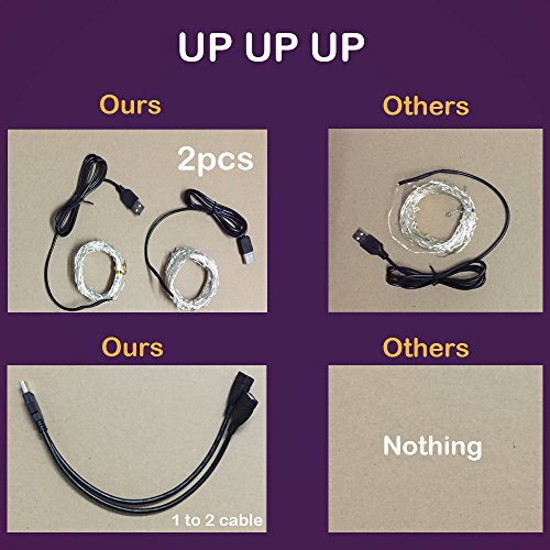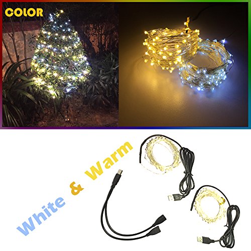 Chiyou 100 LED 33ft/10m String Light, Waterproof Wire Lights for Indoor Outdoor, Bedroom Festival Christmas Wedding Party Patio Window with USB Interface (2pcs 200led 20M 66ft) (Warm, White)