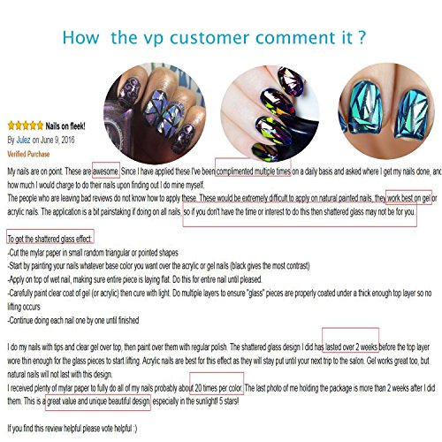 - *Unparalleled Design* You will receive a long sheet of the Glass Nail Foils. Cut into your favorite shape, and create the Unparalleled Design Nail Art by yourself.