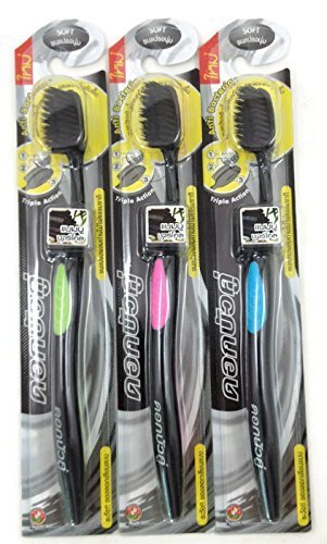 Twin Lotus Slim Soft ฺBamboo Charcoal Toothbrush ( Pack of 3 ) Ultra Soft.