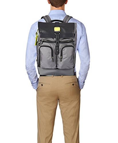 Studio : Tumi Publisher : Tumi Binding : Apparel Product Description Get the rugged look your heart desires without sacrificing the style and sophistication your ensemble needs with the sleek and ruggedly handsome Tumi® Alpha Bravo London Roll-Top Backpack.