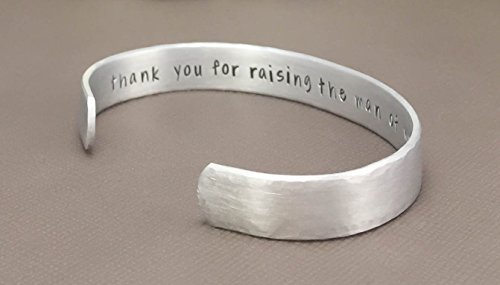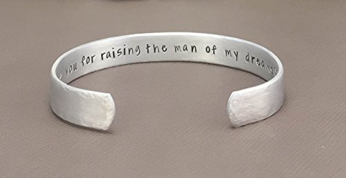 -. Brand : The Jewelry Bar -. Color : Silver -. Department : Women -. ProductGroup : Guild Product -. ProductTypeName : GUILD_JEWELRY -. Title : 0.75" x 6" Hand Stamped Cuff Bracelet- thank you for raising the man of my dreams - Mother in Law - Wedding Gift - Personalized Custom Jewelry