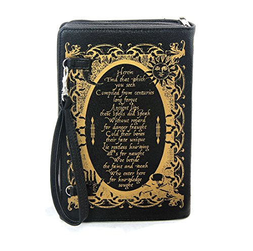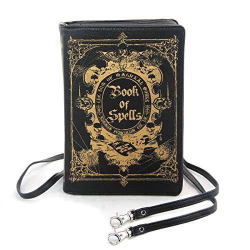 Studio : Zeckos Publisher : Zeckos Product Description Keep all your tricks handy inside this Book of Spells purse! This structured bag is constructed of vinyl that's textured and screen printed to make it look just like an old gothic book filled with all kinds of secrets and spells. The dual interior is lined with canvas and has a zippered pouch in the middle, and the wrap around zipper makes sure you don't lose anything. This 9.5 inch long, 6 inch deep, 2.5 inch wide spellbook handbag includes a detachable shoulder strap with a 22 inch drop and a removable wrist strap so you can carry it on your wrist too. This purse is sure to put a spell on you! 0
