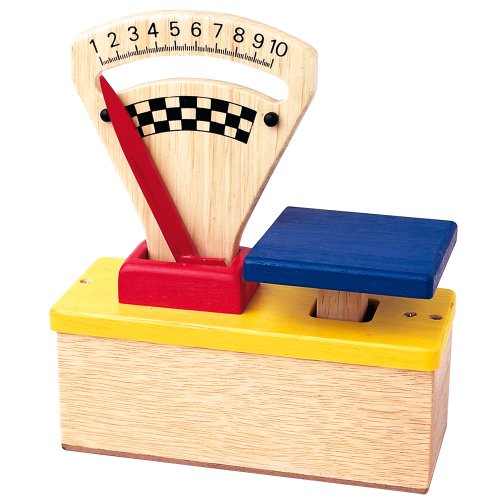 Super Holz-Zeigerwaage für den Kaufladen oder die Kinderküche mit Federmechanik zum echten Wiegen (natürlich nicht geeicht) Für super realistischen Spielspaß - Wiegen wie die Profis Massivholz Maße: ca. 17,5x20x7,5 cm Alter ab 3 Jahre