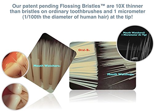 Scientifically Designed Two-Tiered Revolutionary Flossing Bristles measure just 1 micrometer at the tip; Long Soft Bristles remove plaque in areas that a standard toothbrush cannot reach