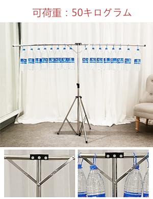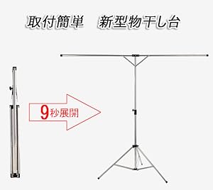 *台座は調整可能のタイプなので、三脚を大きく開けば開くほど安定性が増します。また、三角の台座なので、物干すの時、両側のバランスを気を付ける必要があります。