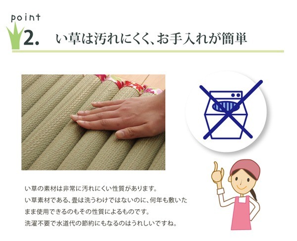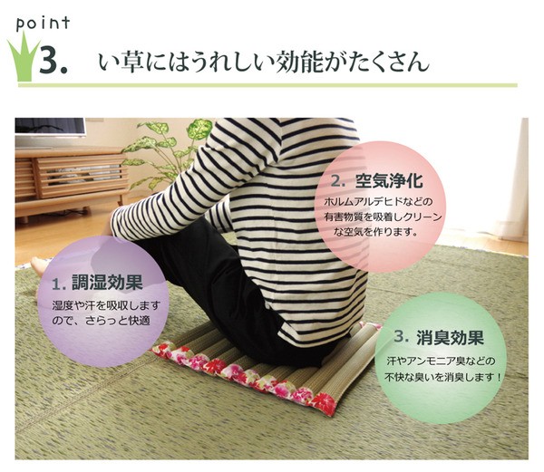 【素材】側地=い草※メセキ織 中材=ポリエステル100% ヘリ=綿100%