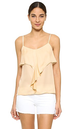 A soft silk Theory camisole with a graceful ruffle along the neckline. Adjustable spaghetti straps.