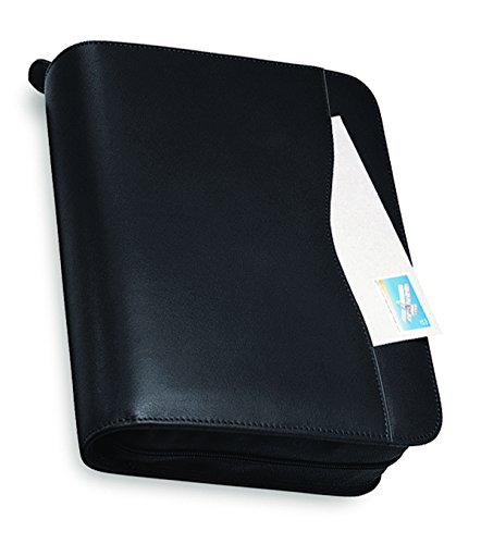 Multiple pocket on interior cover include 16 vertical pockets for business and credit cards, clear front pocket for ID and 2 pen loops