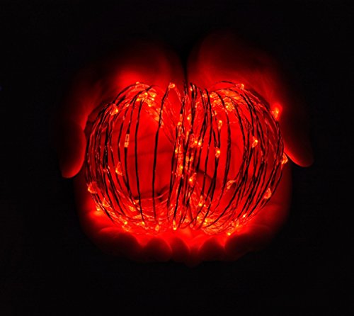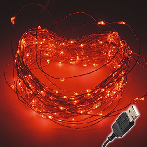 100 Fairy String LED Lights - Indoor/Outdoor, Waterproof, Flexible Copper Wire with USB 33 Ft/10M (Red)