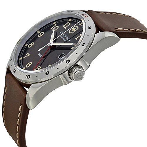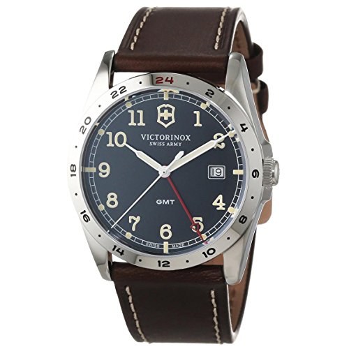 -. Title : Victorinox Infantry GMT Black Dial Brown Leather Strap Mens Watch 241648