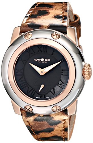 -. Binding : Watch -. Brand : Glam Rock -. Color : Maculate/Black -. Department : womens -. EAN : 0840840101655 -. Feature : Ronda 1069 Swiss quartz movement; rose gold ion plated stainless steel case with stainless steel case cover / Black enamel dial with small second at 6 o'clock; maculated genuine patent leather strap / Swiss-quartz Movement / Case Diameter: 40mm / Water Resistant To 330 Feet -. Label : New Dover Group LTD -. Manufacturer : New Dover Group LTD -. Model : GR40029 -. MPN : GR40029 -. PartNumber : GR40029 -. ProductGroup : Watch -. ProductTypeName : WATCH -. Publisher : New Dover Group LTD -. Size : Standard -. Studio : New Dover Group LTD -. Title : Glam Rock Women's GR40029 Miami Analog Display Swiss Quartz Multi-Color Watch -. UPC : 840840101655