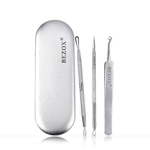 BEZOX 3 in 1 Whitehead & Blackhead Extractor Spot Poping Tools Pimple Acne Remover Kit - Black Head Treatment Tool