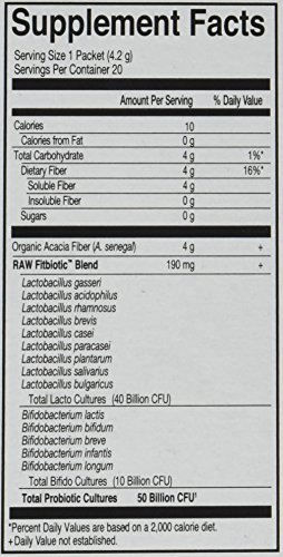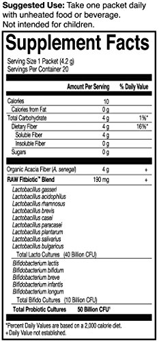 PREBIOTIC SUPPLEMENT: This prebiotic and probiotic supplement contains organic Acacia (A. Senegal) fiber to help good bacteria thrive