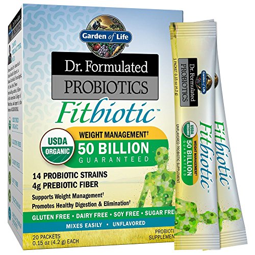 Garden of Life Probiotic Supplement - Dr. Formulated Fitbiotic Probiotics Powder for Digestive and Gut Health, Shelf Stable, 20 Packets
