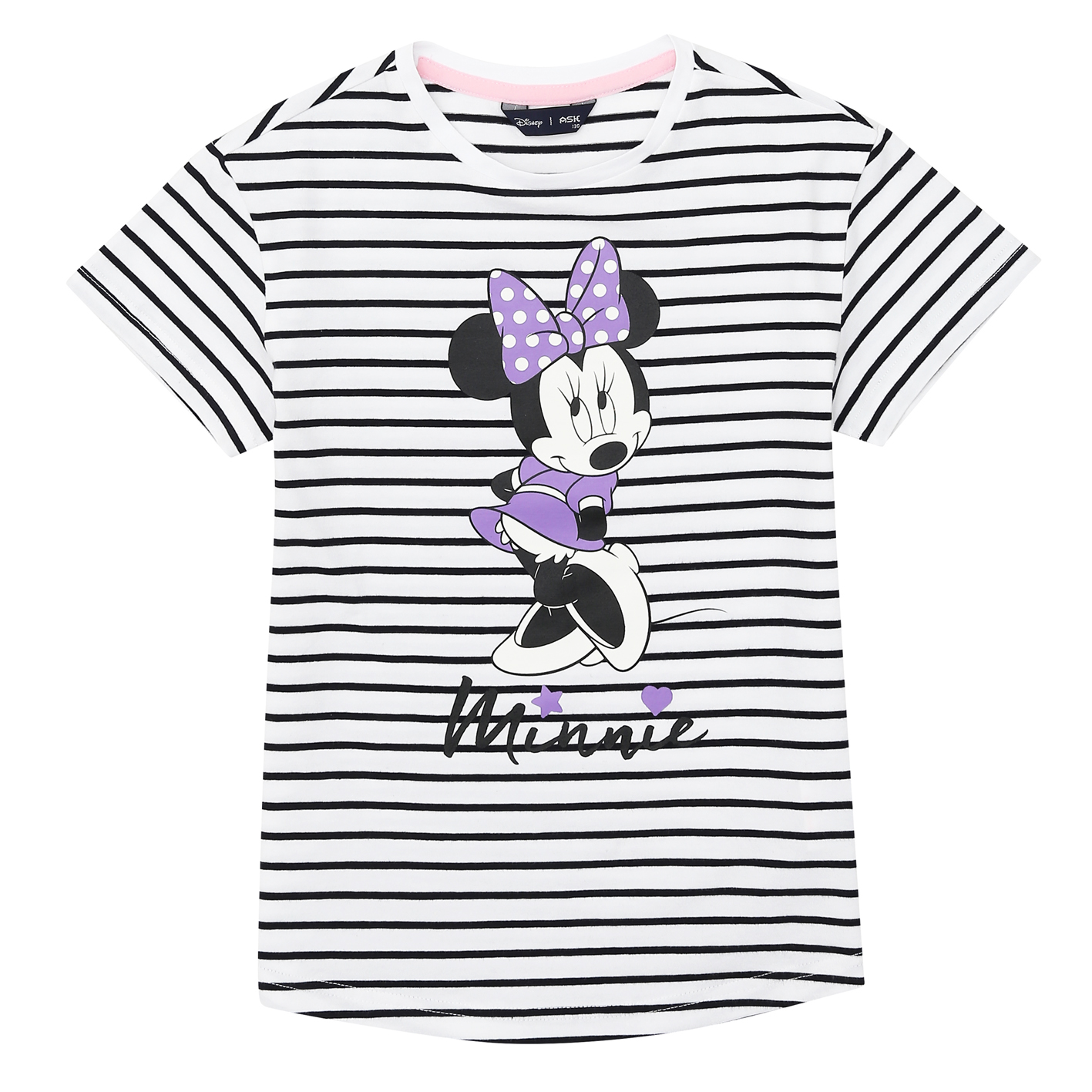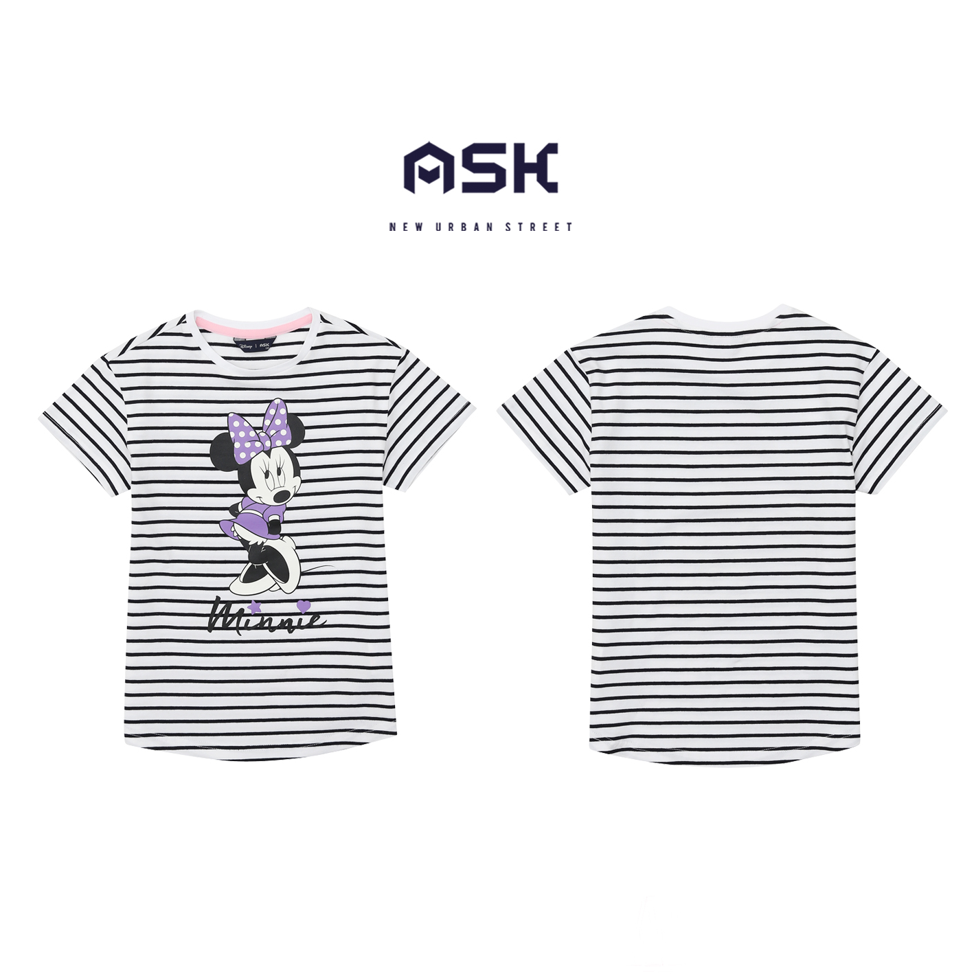40수 싱글 스판 소재의 여아 티셔츠. 기본 ST에 디즈니 미니 아트웍을 활용한 스타일로 여아들에게 판매하기 좋은 아이템.