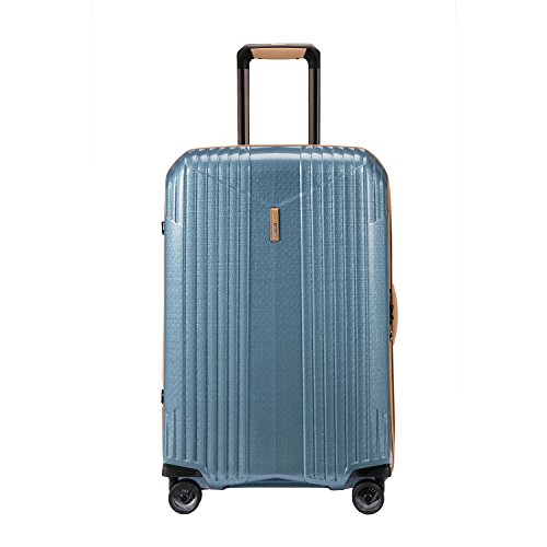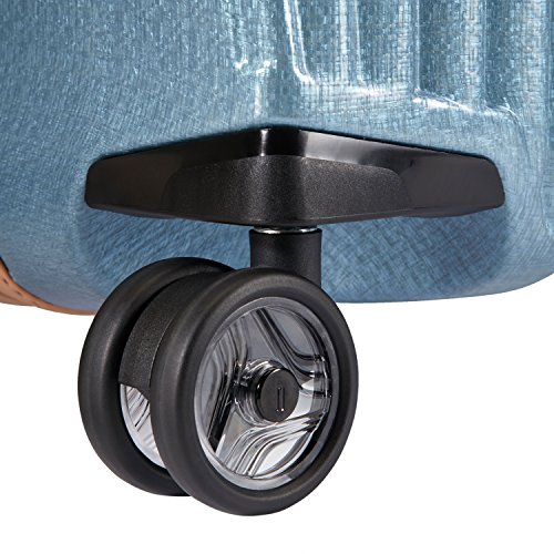 -. Feature : Lightweight, scratch and impact-resistant, metalized Curv material�. Exceptionally resilient, dual tube aluminum pull handle with leather grip / Premium leather carry handles�. Smooth rolling double wheels with translucent polycarbonate core� / Dimensions: 27.5 x 18 x 11, Weight: 6.8 LB / Recessed TSA lock�. Spacious packing compartments� / Mesh divided, zippered compartment�. Zippered accessory pocket�. Elastic cross straps