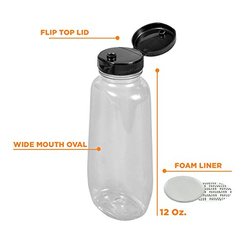 12 OZ WIDE MOUTH OVAL PLASTIC DRESSING/SAUCE JAR WITH FLIP TOP LID AND FOAM LINER TO SEAL BY PEXALE (10, 12 OZ)