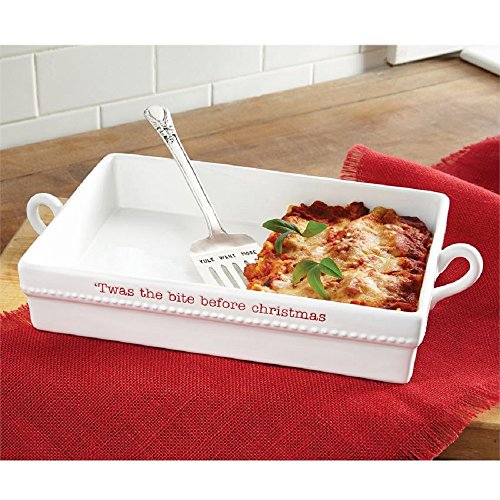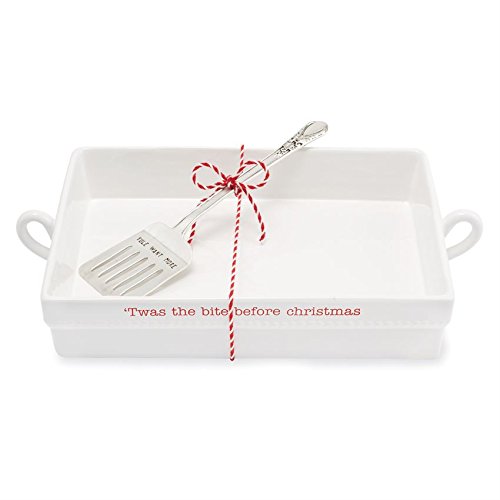 Studio : Mud Pie Publisher : Mud Pie Product Description Mud Pie Holiday Casserole Baker Set. This ceramic casserole bakers features the phrase Twas the Bite Before Christmas. Great addition to you holiday kitchen this December. Made of ceramic. Size: baker 8 1/2" x 15" | spatula 10" 0