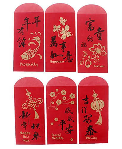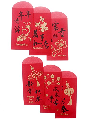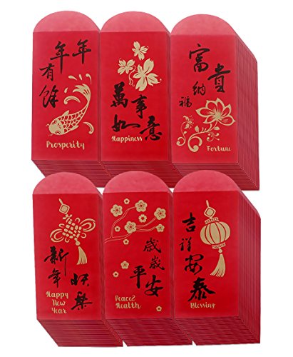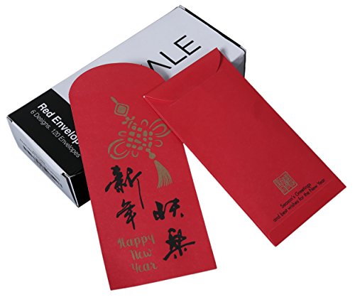 Chinese New Year Red Envelopes - Chinese Red Packets Hong Bao Gift Money Envelopes 6 Designs 120-Pack, 3.5 x 6.9 Inches