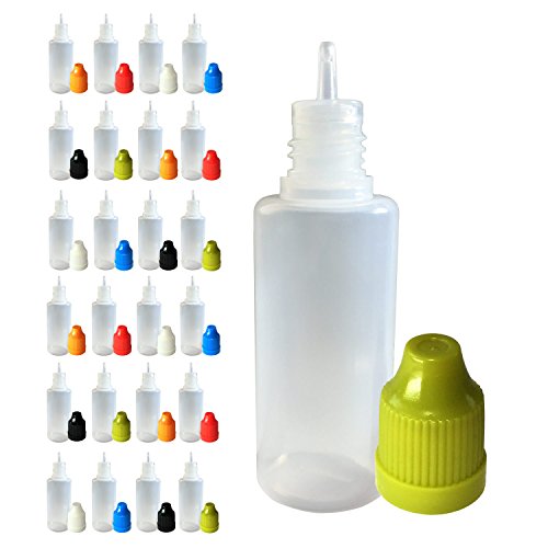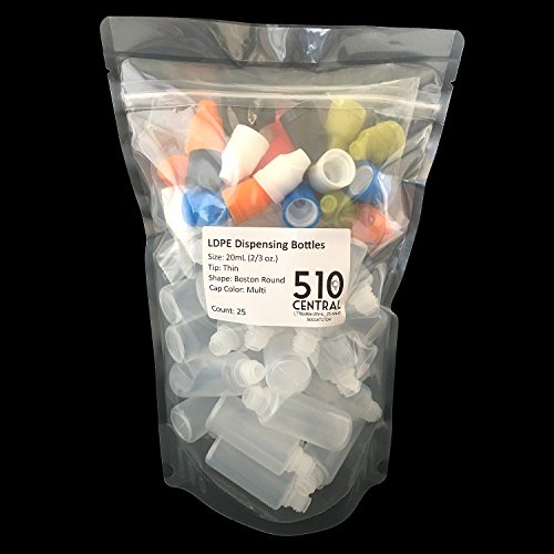 20mL LDPE Plastic Bottle - Long Thin Tip 25 Pack - CRC Child Resistant Cap - BPA Free Squeezable PE Bottles