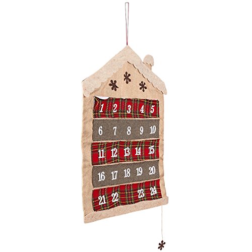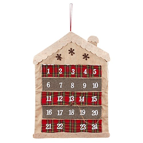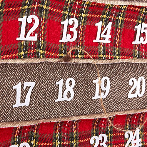 Christmas Advent Calendar - Christmas Countdown Calendar, Festive Polyester Holiday Decorative Calendar, Brown and Red - 17 x 23.2 Inches