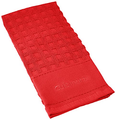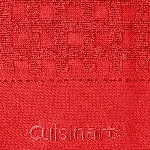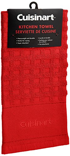 Cuisinart 100% Cotton Terry Super Absorbent Kitchen Towel, Checkered, Deep Red
