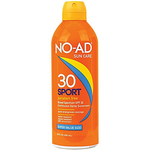Non-greasy, no fragrance, quick dry – NO-AD Sport SPF 30 Continuous Spray Sunscreen - the answer for every sport enthusiast. Formulated to provide broad spectrum UVA/UVB protection in a water and sweat resistant instant dry spray. NO-AD Sport SPF 30, the no-nonsense sunscreen that works for you while you work out.Feature