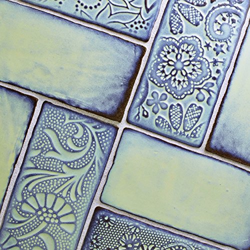 SomerTile WCVASA Antigue Special Agua Marina Ceramic Wall Tile, 3" x 6", Green/Blue/Brown