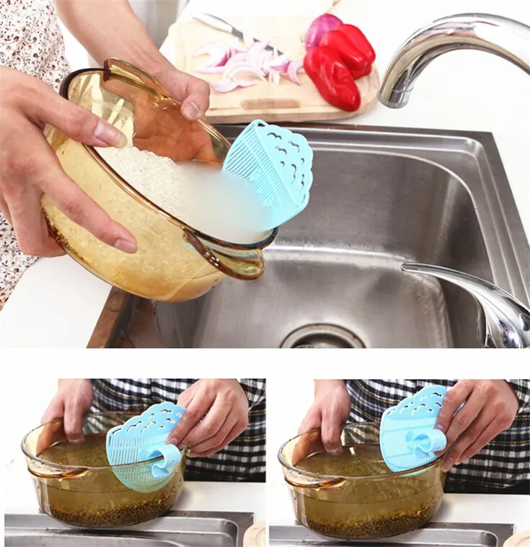 1 pc Smile Shape Washing Sieve Plastic Rice Washing Sieve Drainer Device Strainer Debris Filter Random Color Kitchen Utility
