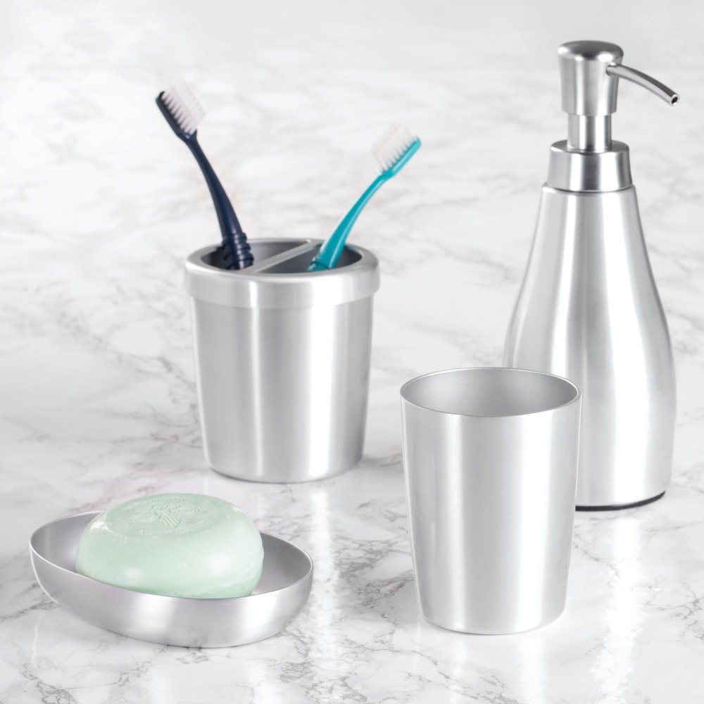 Alumina series is a metallic design that you can choose from soap bottles and soap puttings, toothbrush holders and tumblers, trash cans and tissue box covers, and any bathroom.