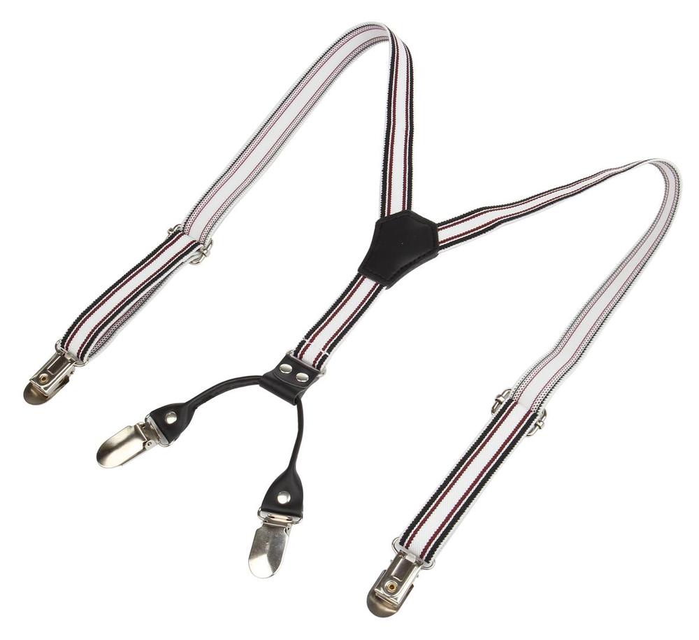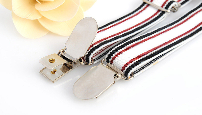 ・重量:120g カラー:サスペンダー/ホワイト生地にブラックとレッドのストライプ、クリップ/シルバー