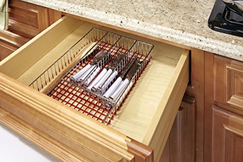 Great tray at a value price. 5 large slots provide storage space for all of your flatware and serving utensils. The no slip base and feet keep the tray in place as the drawer opens and closes.