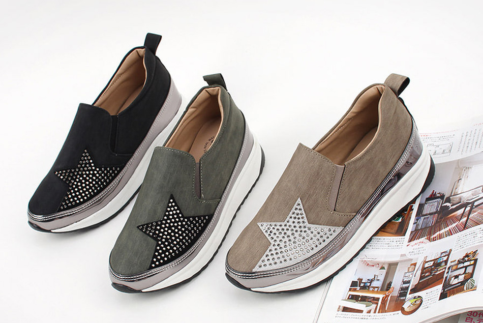 발등위 별모양의 큐빅장식과 슈즈라인에