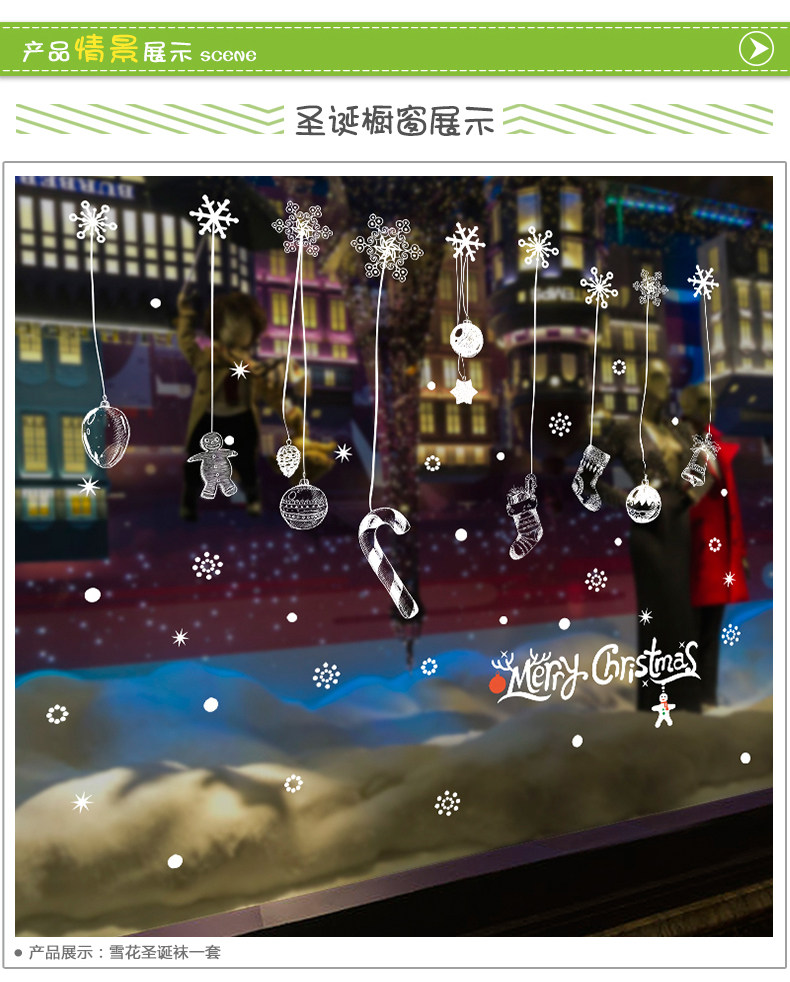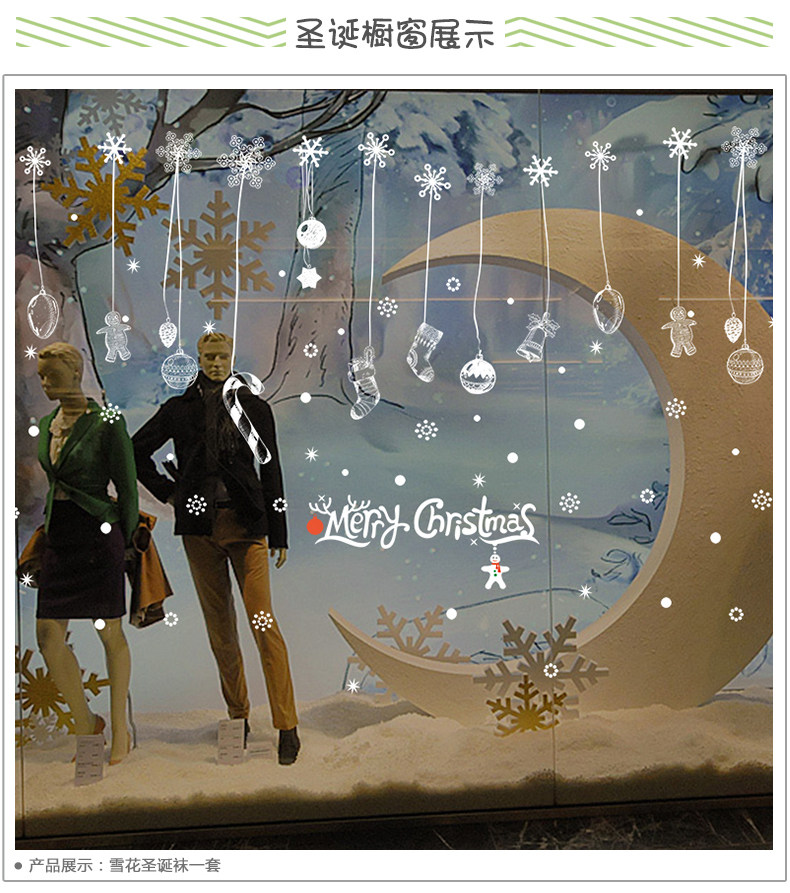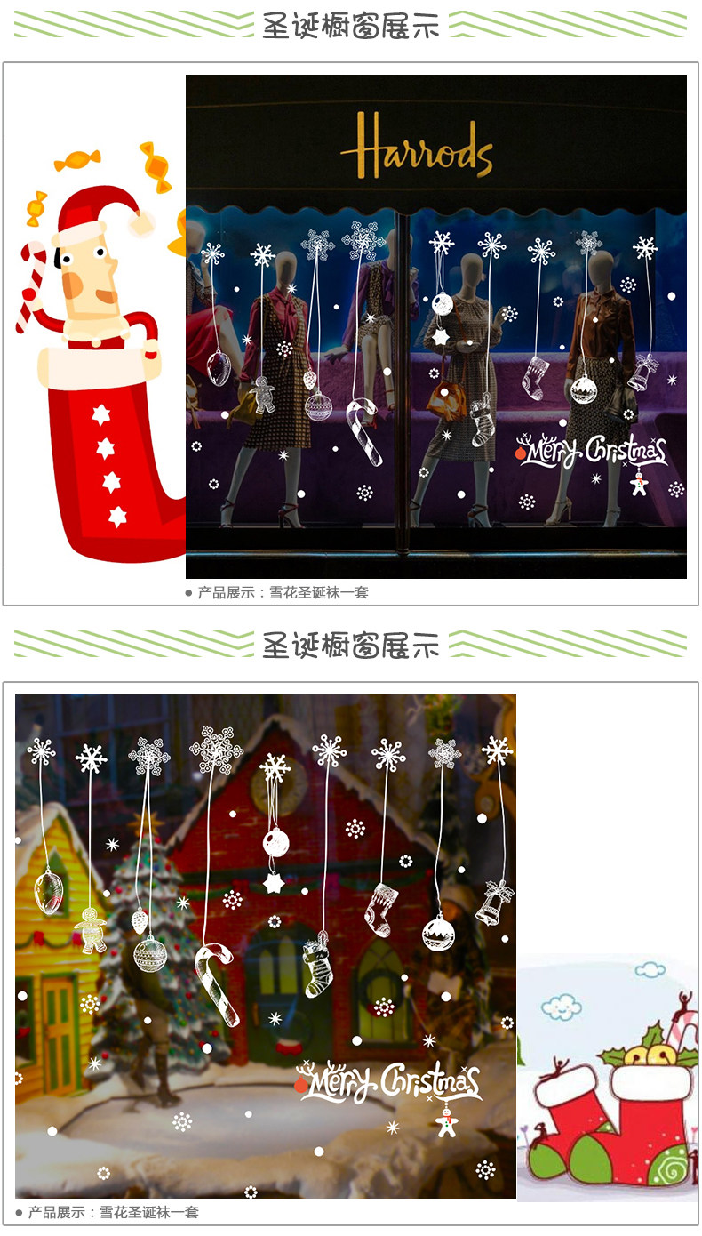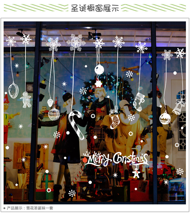 圣诞节装饰品圣诞袜雪花玻璃贴花门贴店铺墙上贴画服装店贴纸自粘