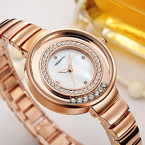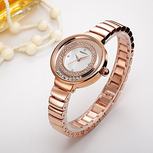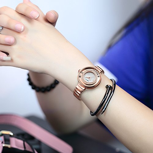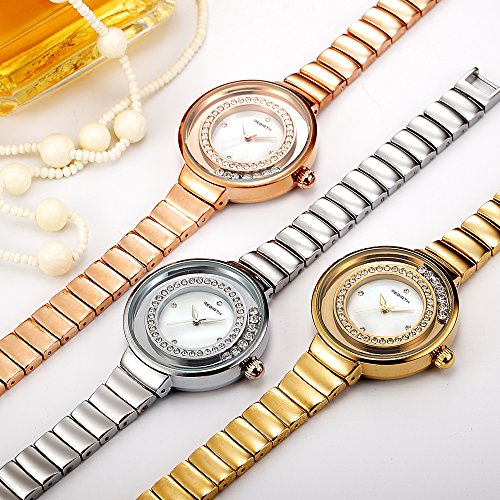 Bosymart Women's Gold-Tone/ Rose Gold-Tone/ Silver-Tone Crystal Analog Quartz Stainless Steel Bracelet Watch