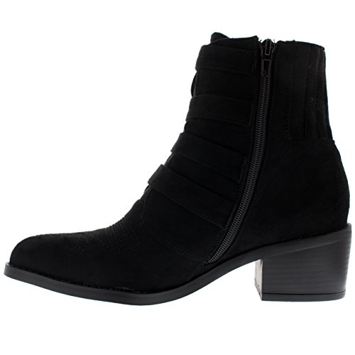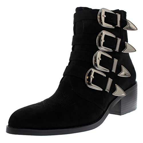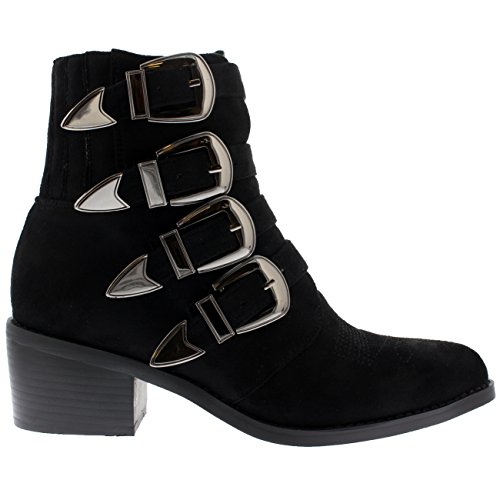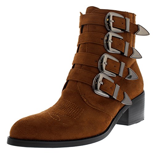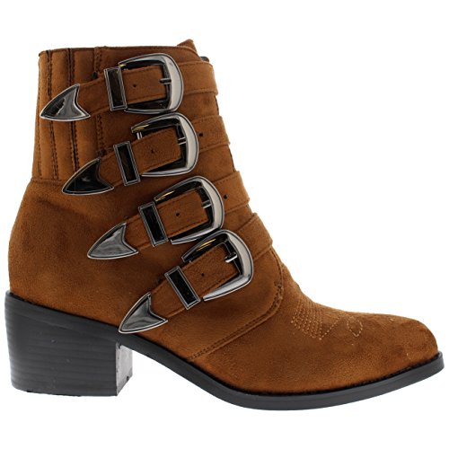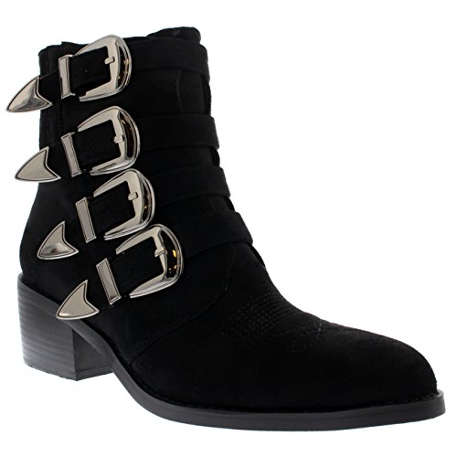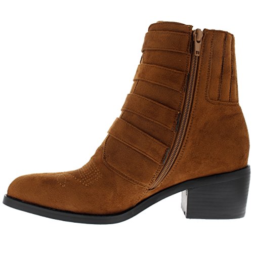 Product DescriptionThese ankle boots feature smooth faux suede uppers, round toe front, low block heel, contrasting stitching accents and pointed strap fastenings on the vamp.0