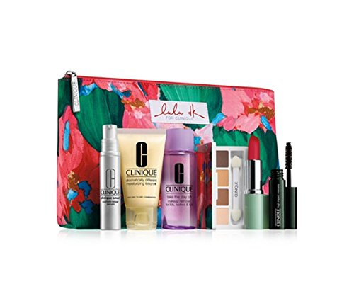 -. Feature : 1. Dramatically Different Moisturizing Lotion+, 1 fl. oz. (30ml) & Take The Day Off Makeup Remover, 1.7 oz. (50 ml) / 2. Clinique Smart Custom-Repair Serum, 0.34 oz. (10ml) & High Impact Mascara in Black, 0.14 oz. (3.5ml) / 3. Long Last Soft Matte Lipstick in Matte Crimson, 0.14 oz. (4g) / 4. All About Shadow Quad color palettes (shades: Starstruck from Morning Java Quad, Dark Brown From Teddy Bear, Amber From Morning Java Quad, and Jute Brown), 0.08 oz. (2g) / 5. Lulu DK Limited Edition Cosmetic Bag Size: 10.5" x 5.5" x 3"