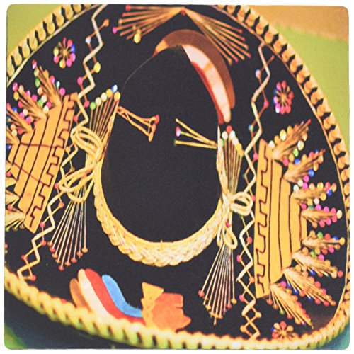 3dRose LLC 8 x 8 x 0.25 Inches Mouse Pad, A Large Mexican Hat Hanging On A Wall At A Restaurant In with Bright, Vibrant Yellow And Black (mp_52074_1)