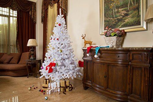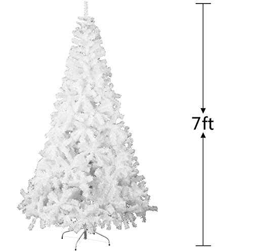 GOJOOASIS 7' Artificial Christmas Tree Premium Spruce Hinged with Metal Stand Eco-Friendly Xmas Pine Tree White