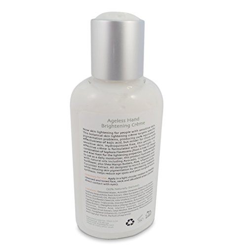 - Feature : Skin brightening products are must haves for your daily regimen. While sunscreen is important, new research shows that antioxidants in skin care may have sunscreens beat. / Naturally derived daily hand skin care is safe and gentle with 94% of the effectiveness of kojic acid but milder for sensitive skin. / Reduce skin pigmentation and age spot problems with enriching and hydrating skin. Natural oils including Avodado, Aloe, Vitamin E and Cucumber extract help to decrease melanin synthesis. / Hydroquinone free this lotion cream lightens skin and provides effective anti-aging properties. / Free Gift of Coconut Lip Balm with purchase of Main Line Ageless Hand Cream for Face Neck and Hands. Perfect Valentine Gift for Men, Women, Boys and Girls.